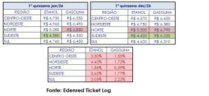 Valores médios e variações regionais do etanol e da gasolina